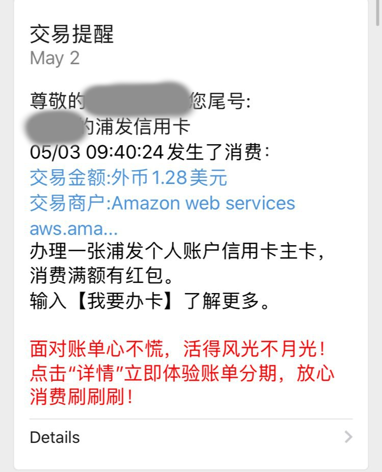 其中我还用过一次他的LightSail, 也是被@indexyz 拉上贼船的. 当时是他从淘宝买了一些每个帐号只能用两张的券, 结果额度扣完了没发现, 直到结算到我信用卡的时候才发现了